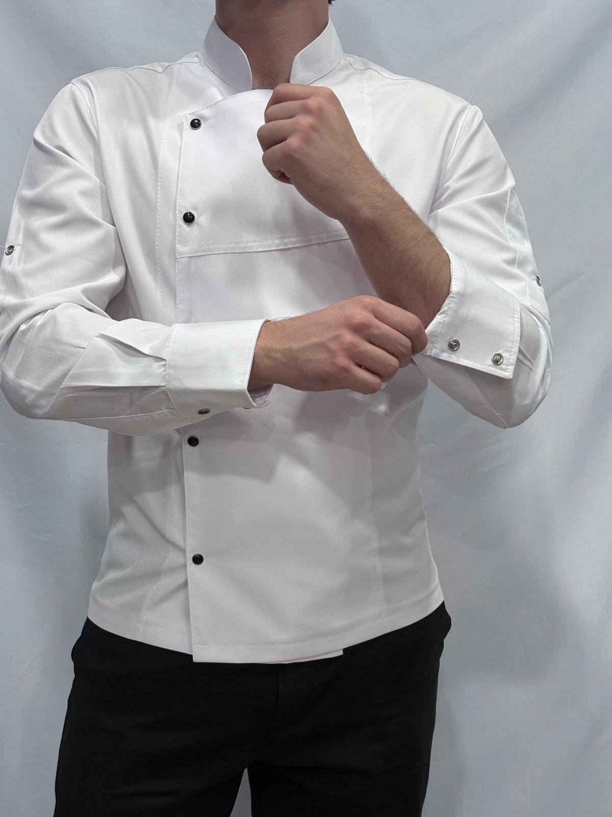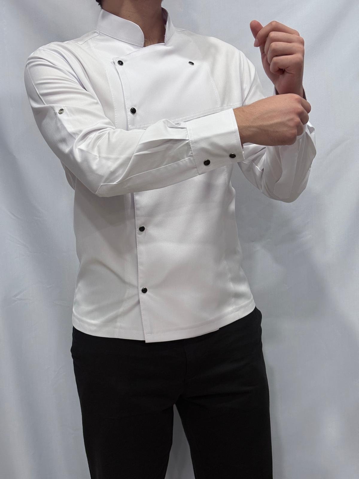 Mutfakta dayanıklılığı ve uzun süreli kullanımı ile bilinen Alpaka kumaşın beyaz rengini siyah çıtçıt detayıyla sizler için tasarladık